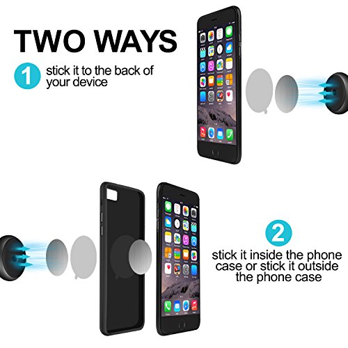 - Simple Installation: provides a choice of an inner (large) and outer(small) metal plate. Each plate uses an adhesive tape to attach to select a mounting location and is easily removable. The small plate can be directly placed onto the case or phone using the adhesive backing, or you can place the large plate between your device and its case