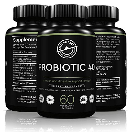 HIGH QUALITY AND HIGH POTENCYStellar Labs Probiotic 40 is formulated with billions of probiotic organisms to support a healthy gut. They are entirely free of dairy, eggs, shellfish, soy, tree nuts, and peanuts so that anyone that has an allergy can get the great benefits of probiotics. They are also Low Fodmap Certified, gluten free, lactose free, GMP, and Non GMO.