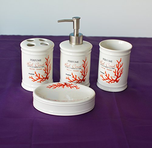 4 Piece Bath Set includes 1x tumbler; 1x soap dish; 1x liquid soap dispenser; 1x toothbrush holder