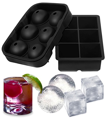 Ice Cube Tray Silicon (Round & Square) - Set of 2 - Sphere Ice Balls with Lid - Makes Giant Ice Balls and Square - by Utopia Home