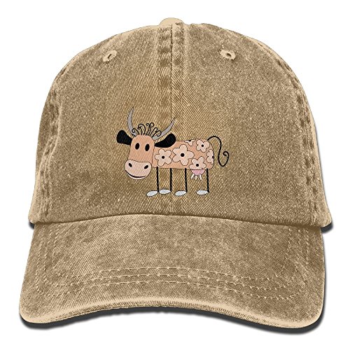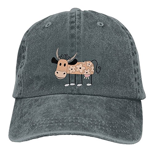 (Uzhongquux)/Accessories/Hats/DIRECT FROM USA/Uzhongquux Cartoon Cow Unisex Cotton Denim Baseball Cap Adjustable Strap Low Profile Plain Hats Ash