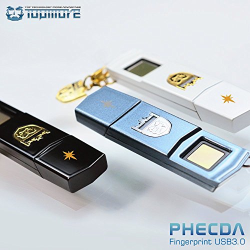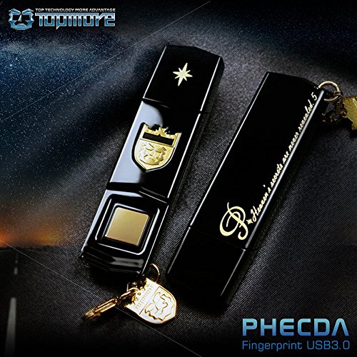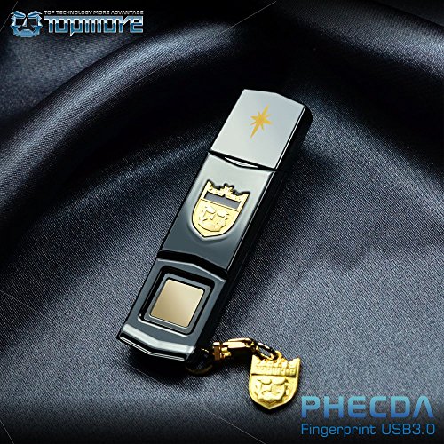 TOPMORE Phecda Fingerprint Recognition USB3.0 Flash Drive Fingerprint ID Security Flash Disk Biometric Fingerprint Reader Memory Stick (64GB, Black & Gold)