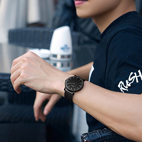 · Two options: Black dial with stainless Milanese loop band, black dial with calf leather strap. You can choose the style you like.