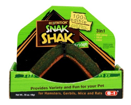 - Made with alfalfa and golden honey, the realistic wood look Snak Shak bridge has a hard texture that promotes small animals' natural chewing instinct.