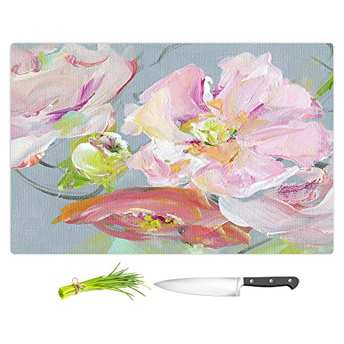 DiaNoche Designs CB-SusanPepeFlowersOnGrey2 Artist Susan Pepe-Flowers on Grey Cutting Boards from, Large 15" x 11"