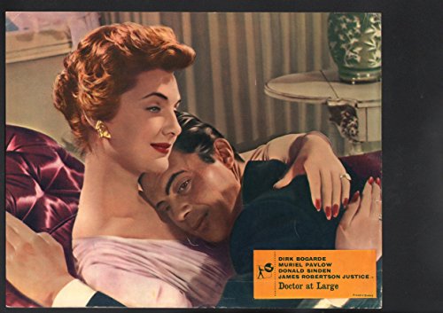 MOVIE POSTER: Doctor at Large Lobby Card-Muriel Pavlow holding Dirk Bogarde close.
