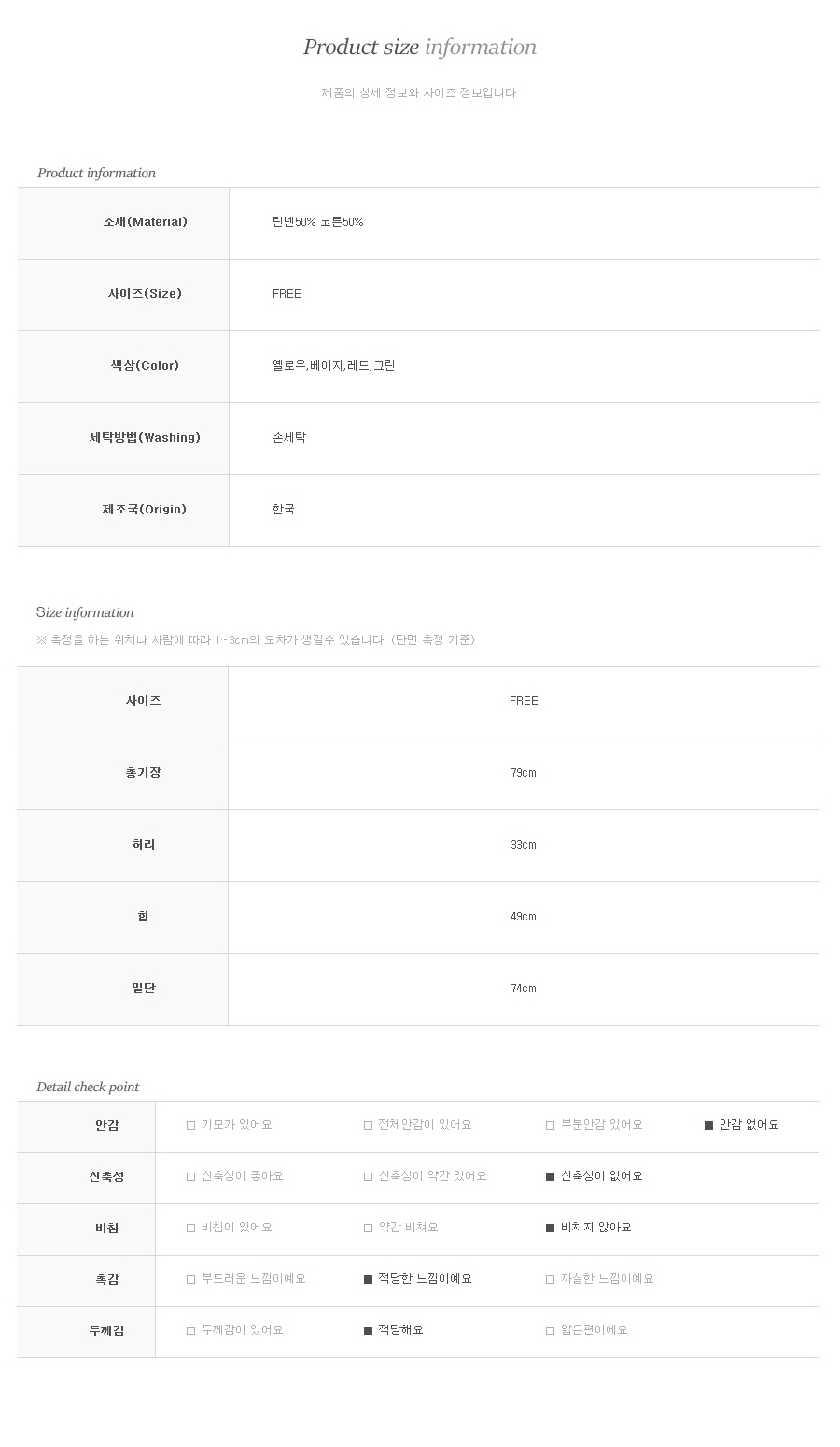 린넨과 코튼 혼방소재로 톡톡하고 고슬한 터치감이라 여름에도 시원하게 착용하실 수 있답니다~ 뒤허리에 밴딩 넣어주어 착용감 편안하구요 왼쪽 허리 절개선에 콘솔지퍼 달아주어 오픈, 클로징 가능해요