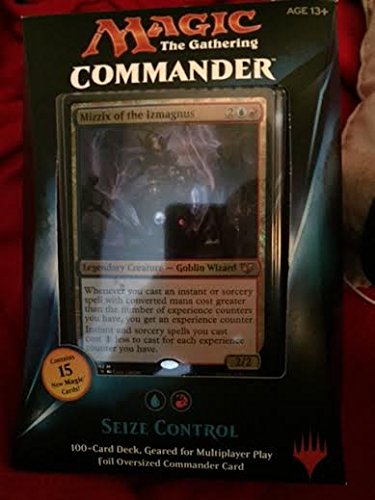 -. Brand : Magic: the Gathering -. EAN : 0617390972154 -. Feature : Two-color decks allow for surP.R.Ising synergies! 100 cards per deck including 15 new Magic cards legal to play in all Eternal formats. -. IsAdultProduct : 0 -. IsAutographed : 0 -. IsMemorabilia : 0 -. Label : Wizard of the Coast -. Manufacturer : Wizard of the Coast -. MPN : B30690000 -. PackageQuantity : 1 -. PartNumber : B30690000 -. ProductGroup : Toy -. ProductTypeName : COLLECTIBLE_CARD -. Publisher : Wizard of the Coast -. Studio : Wizard of the Coast -. Title : MTG Commander 2015 Edition Magic the Gathering - Seize Control Blue Red Deck New Sealed -. UPC : 617390972154