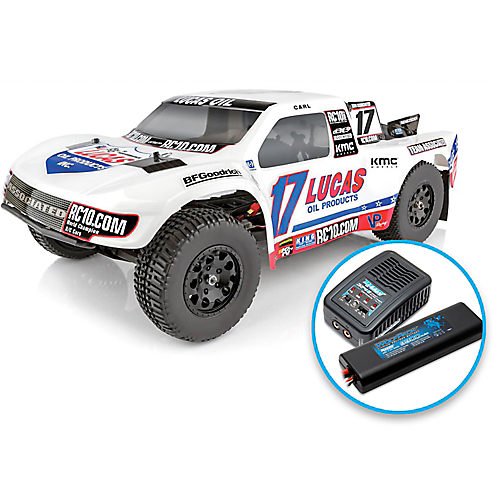 Studio : Associated Publisher : Associated Binding : Toy Product Description 8-Time R.O.A.R. Short Course National Champion -- now with battery and charger! Carl Renezeder is a 9-time national short-course off-road champion, and has been earning the moniker of "living legend" since he first hit the track in his original Pro-2 truck in 1999. It didn't take long for Carl to start winning races that quickly added up to 121 wins in his Pro-4 and Pro-2 trucks in just 18 seasons! Team Associated's SC10.3 is a Ready-To-Run RC replica of the trucks driven in the Lucas Oil Off Road Racing Series. Features include a water-resistant high-power Reedy brushless speed control, Reedy 3300kV brushless motor, and a water-resistant enclosed receiver box. The suspension received an upgrade with the addition of adjustable blue anodized aluminum V2 coil-over shocks. The gearbox now comes with a heavy-duty sealed gear differential and the externally adjustable V2 slipper clutch. The short-course hex-drive wheels come standard on the SC10.3 with high-traction racing compound rear tires for more grip. The 2.4GHz 2-channel radio system and metal-gear, high-torque Reedy digital servo round out the SC10.3 as a potent short course race machine! 0