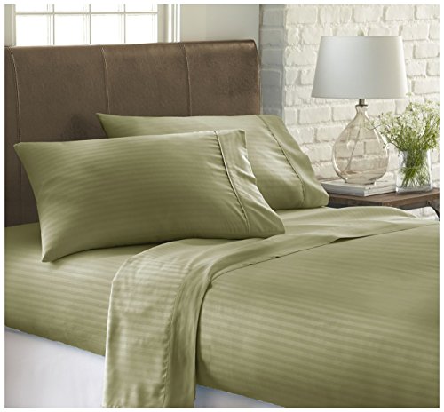 iEnjoy Home 4 Piece Embossed Dobby Stripe Ultra Soft Deep Pocket Bed Sheet Set, King, Sage