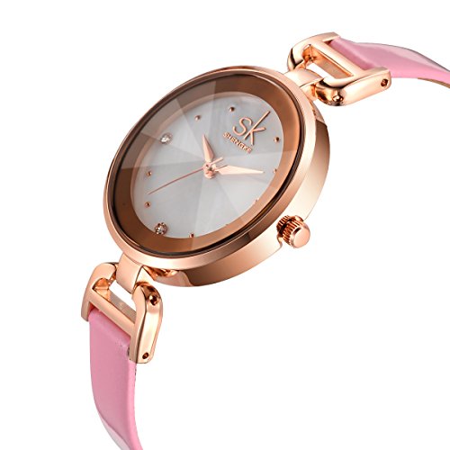 SHENGKE SK K0001 Fashion Women's Wrist Watches with Diamond and Leather Strap
