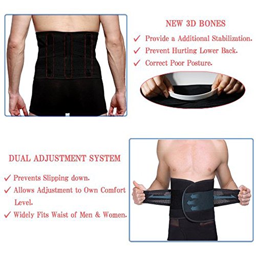 BUILT-IN 3D SKELETON: The lower back brace in reinforced by built-in 3D bones, which correct your posture and provide additional support to your lower back, abdomen and hip area. That way, you can be sure you maintain a correct posture and maximize the pain and stress relief.