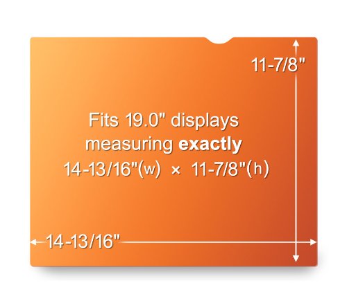 - Feature : Keeps your personal or confidential information safe from prying eyes / User sees clearly while people on either side see a vivid golden screen / Designed to fit standard desktop LCD monitors with a diagonally measured 19" viewing screen and a 5:4 aspect ratio / Actual filter dimensions are 14 13/16" wide x 11 7/8" high (377 mm x 302 mm) / Includes your choice of two easy-to-use attachment methods / Offers the highest level of clarity within 3M's line of privacy filters / Reversible, privacy filter can be used with either gold or black side facing the user / Lightweight, thin, frameless design / Protects display from dirt, debris and scratches / Cleans easily with a soft cloth and water / Great for high traffic areas and open office environments. / Limited 1-year warranty