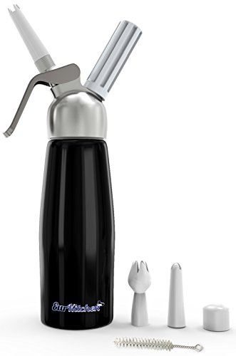 EurKitchen Professional Whipped Cream Dispenser w/ Leak-Free Reinforced Aluminum Threads for Maximum Durability and Safety - 1-Pint (Black) - Uses Standard 8-Gram N2O Cartridges (Not Included)