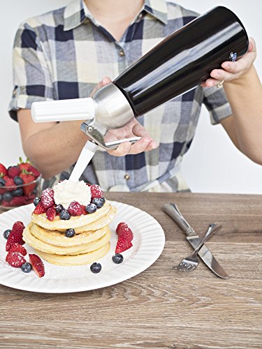 - SERVE CUSTOM-CRAFTED TREATS anytime with this 1-pint artisanal cream whipper. Home cooks and professional chefs can top off ice cream sundaes or make rich chocolate and savory mousses, coconut whipped cream, soups, sauces, foams, frothed lattes, and nitro coffee. You can even make super-fluffy scrambled eggs and homemade butter. Note: For homemade butter, do not dispense through valve, but instead open dispenser head after additional shaking (compared to whipped cream) and remove with a spatula.