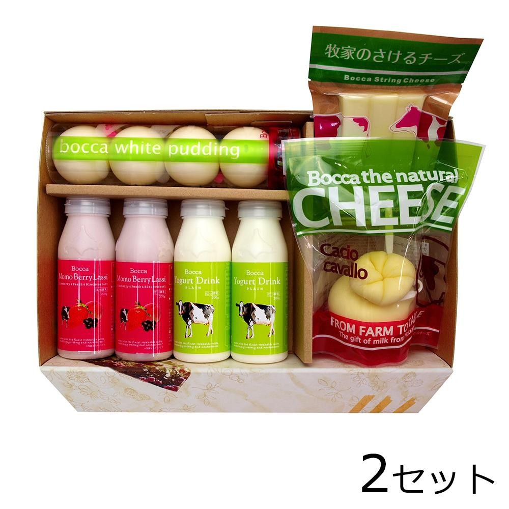 | セット内容 | 「乳製品詰め合わせ1」×2セット 【1セットあたり】 ・牧家の白いプリン(75g×4個)×1 ・牧家 飲むヨーグルト(200g)×2 ・牧家 ももベリーラッシー(200g)×2 ・カチョカヴァロチーズ(200g)×1 ・牧家のさけるチーズ(120g)×1 |