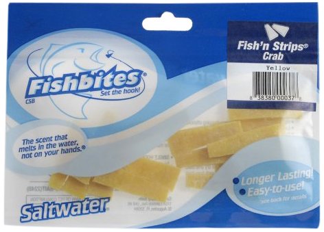 Studio : Fish Bites Publisher : Fish Bites Binding : Sports Product Description The Fishbites 0037 Fish'n Strips Crab Saltwater Long Lasting Bait is the bait that started it all for Fishbites. This bait's tough consistency makes it the perfect pick for surf fishing, casting off a jetty, atop a pier, or from the bridge. Real crab scent will draw fish in. Use wherever bait stealers are notorious. The lures are made of biodegradable hydrogel plastic making them environmentally safe. Come with 15-baits per bag. Fishbites are the result of a lifelong passion for fishing and decades of scientific research. Carr Specialty Baits, Inc. is a family-owned business founded in 2000 in St. Augustine, Florida, by avid angler and world renowned marine researcher Dr. William Carr and his family. 0