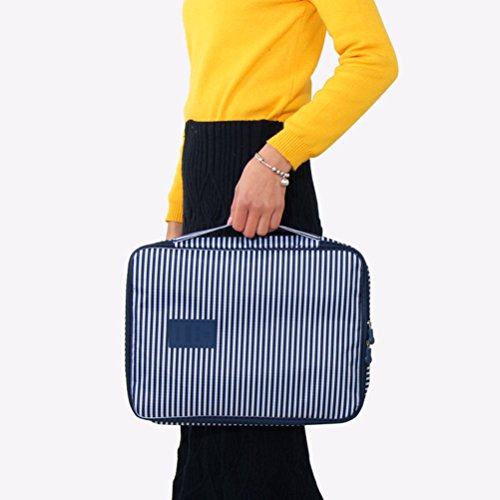Features - Color: Navy Blue. - Material: Oxford Cloth - Size: 36x26x5cm/14.2x10.2x2.0inch - The interior features joinable elastic belt and an internal zipped divider (perfect for ties, underwear, socks and other knickknacks), to keep the keep your belongings tidy. - Made of good oxford cloth, it is waterproof and wear resistant. - Good material and workmanship make sure it is durable and ventilated. - Zipper closure can protect them from dust, keep your luggage clean and organized. - Ideal for active lifestyles including traveling, backpacking, camping, etc.