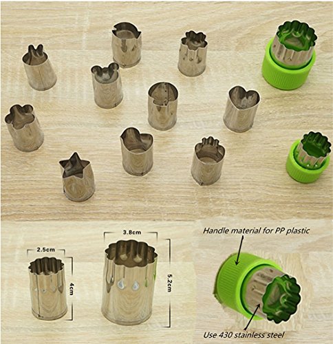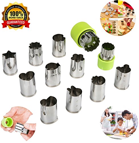 Yicol Vegetable Fruit Cookie Cutters(12 Pieces) Stainless Steel Moulds Sets for Food Decorations,DIY Fun.(Green)