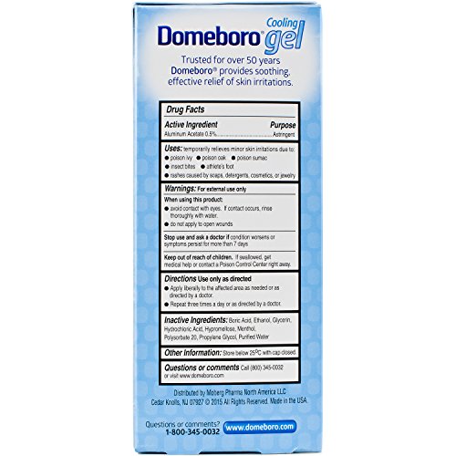 DOMEBORO COOLING GEL IS A CLEAR, ODORLESS GEL THAT COOLS ON CONTACT FOR FAST, SOOTHING RELIEF WHENEVER YOU NEED IT. Now, the Domeboro brand that has been trusted and recommended by doctors for over 50 years brings you a convenient and effective gel form of the original Burrow's solution.