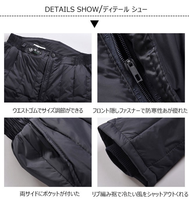 上質な素材を使用して、防寒性と保温性が優れるダウンパンツが登場。 | |