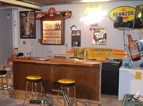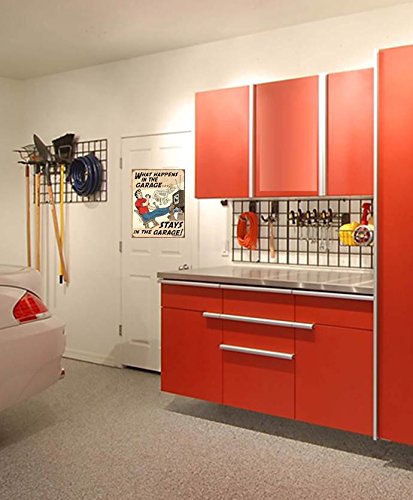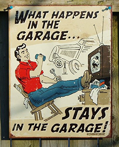 DELIVERS FREE HUMOR TO YOUR GARAGE/GAMES ROOM/PUB/MAN CAVE/REC ROOM: No one will disagree as this WHAT HAPPENS IN THE GARAGE… STAYS IN THE GARAGE tin sign is a surefire way to get some laughs out of your friends or family. Perfect for your garage, games room, man cave, rec room, or anywhere you have wall space.