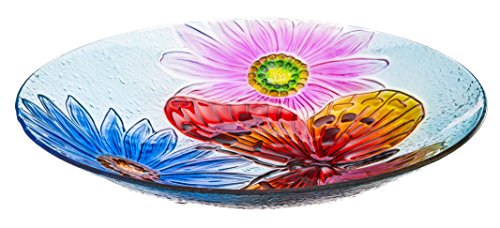Evergreen Graceful Butterfly Glass Birdbath Bowl, 18 inches
