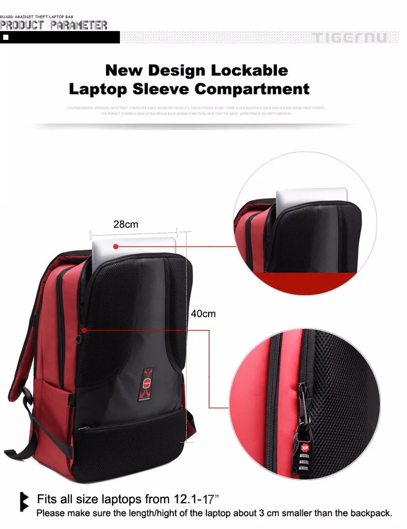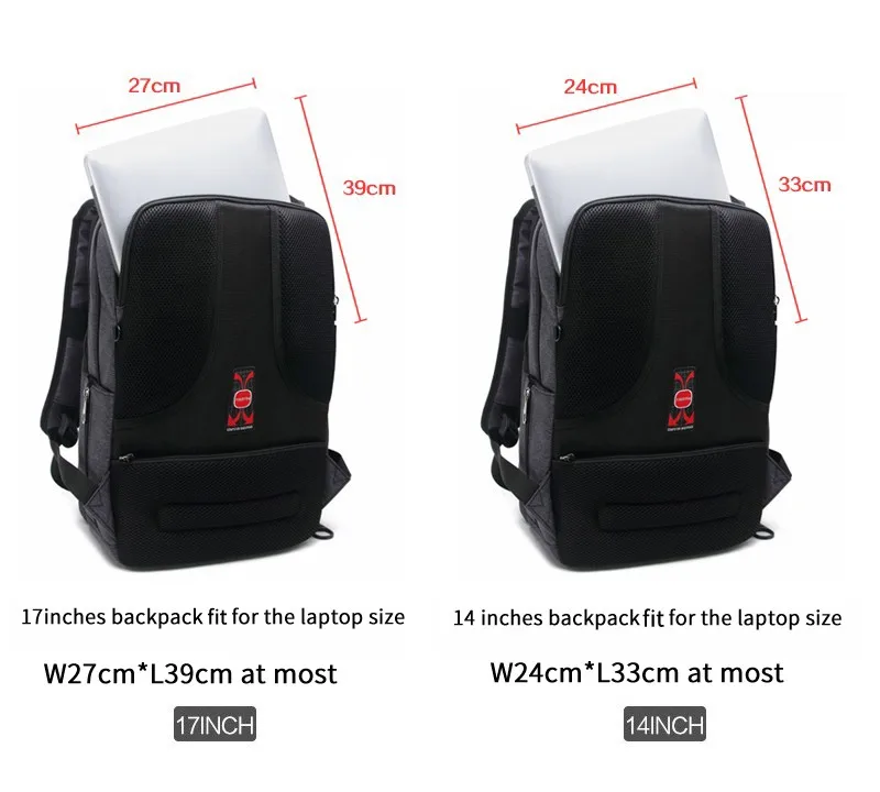 Please make sure the length/high of the laptop about 3cm smaller than the backpack