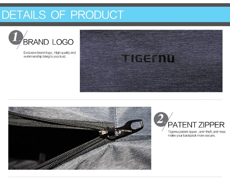 Double layers four tooth anti-theft zipper on the main compartment