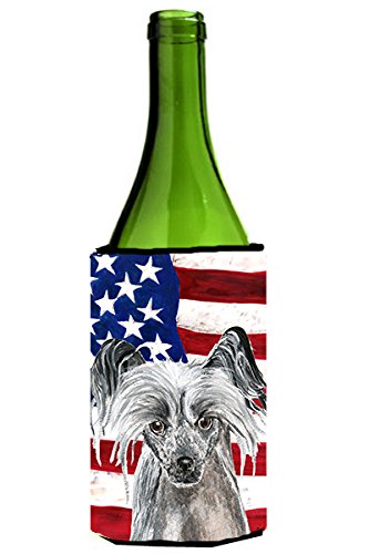 Chinese Crested USA American Flag Wine Bottle Beverage Insulator Beverage Insulator Hugger