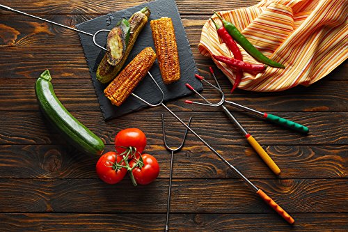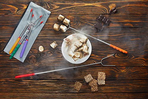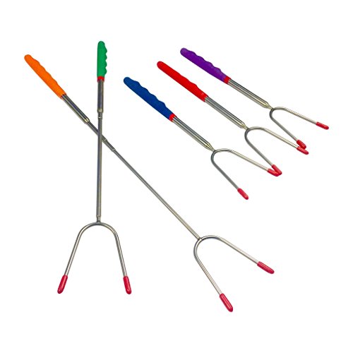 SAFE FOR CHILDREN: Extra Long 45-inch Extendable Telescoping forks keep you and kids at a more enjoyable and safe distance from the heat and the fire. The prongs’ sharp tips are protected with rubber, making them perfect for handling around children.