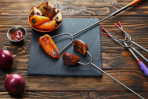 EASY CLEANING AND STORAGE: Ideal for making the perfect smores, sausages, shrimps, hot dogs and even vegetables or fruits. Can be used as a fork to move food from the grill to the serving plate. Our set also comes with a zippered bag for easy storage. The non-stick coating allows for no-mess clean up.