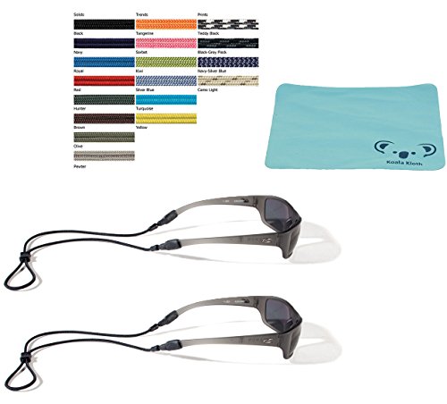 Croakies Terra System Adjustable Rope Eyewear Retainer & Sunglass Strap | Large End (XL) Eyeglass, Sports, & Safety Glasses Cord & Holder | 2pk Bundle + Cloth