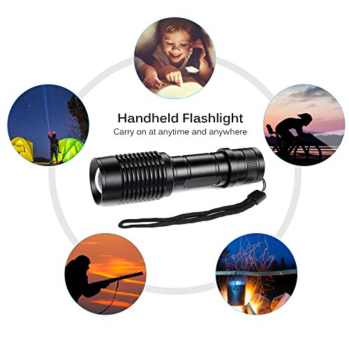 Tactical Flashlight, 800-1000 Lumen Cree-XML T6 LED Portable Zoomable Flashlight 5 Mode Adjustable Focus Water Resistant for Cycling Hiking Camping Emergency