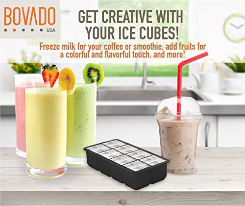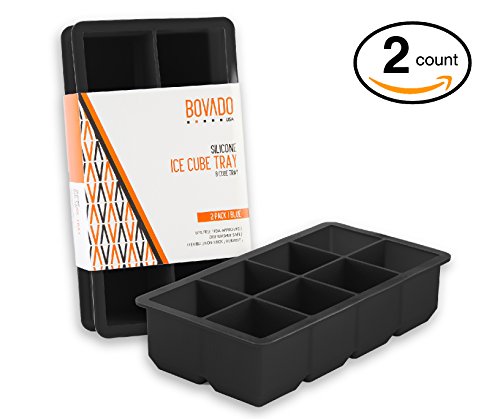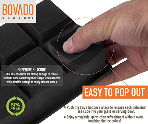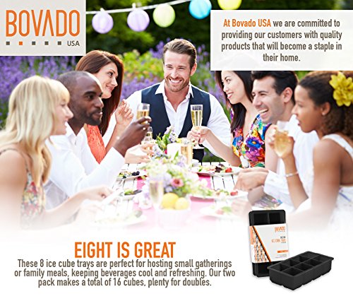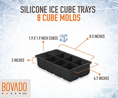 Silicone Ice Cube Trays - 8 JUMBOCubes Molds - Pack of 2 Flexible and Bendable Easy Release, Food Grade BPA Free Material - Black - by Bovado USA