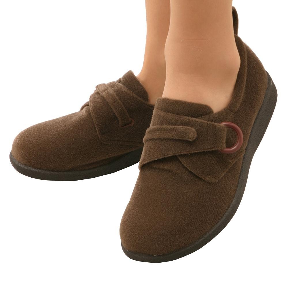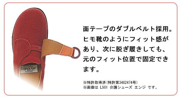 指周り部分は指が自由に動かせるように上下左右にゆとりの設計、甲周りはフィット感と履き易さを兼ね備えたダブルベルトを採用。もちろん、つまづき防止やかかと着地安定性の設計も忘れてません。「すごくラク!!」という感動を味わってみませんか? |