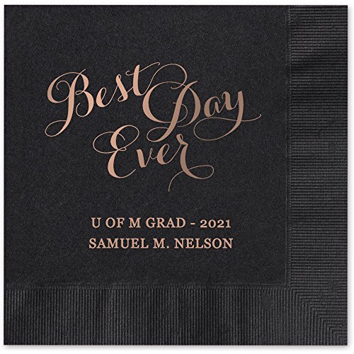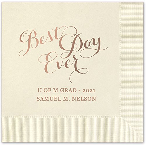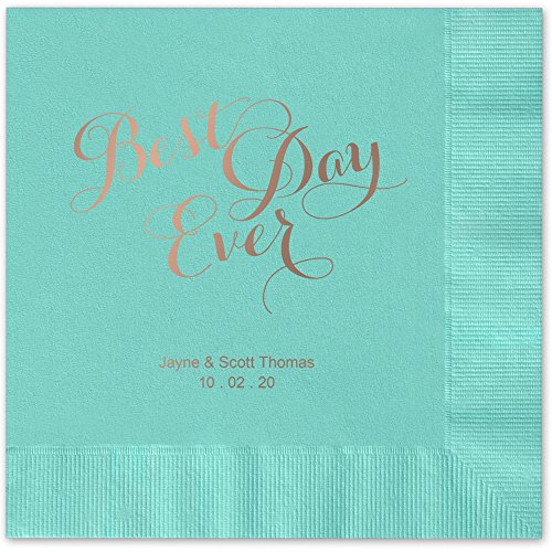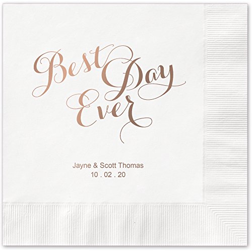 -. Title : Best Day Ever Personalized Cocktail Beverage Napkins - Canopy Street - 100 Custom Printed Paper Napkins with choice of foil stamp