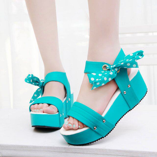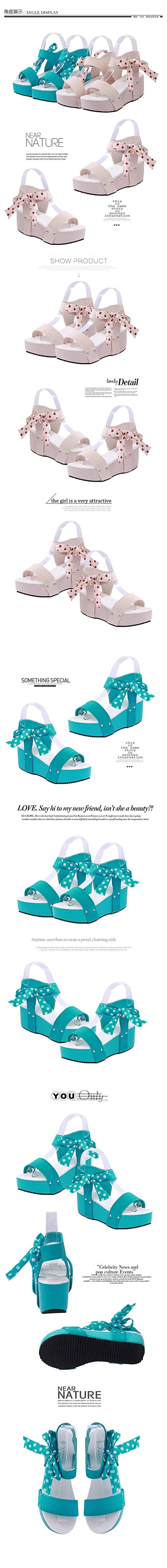 松糕凉鞋女士厚底凉鞋系带平底中跟坡跟凉鞋平跟圆点露趾学生