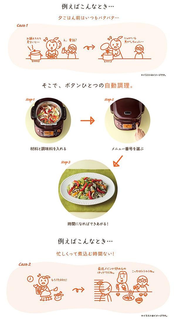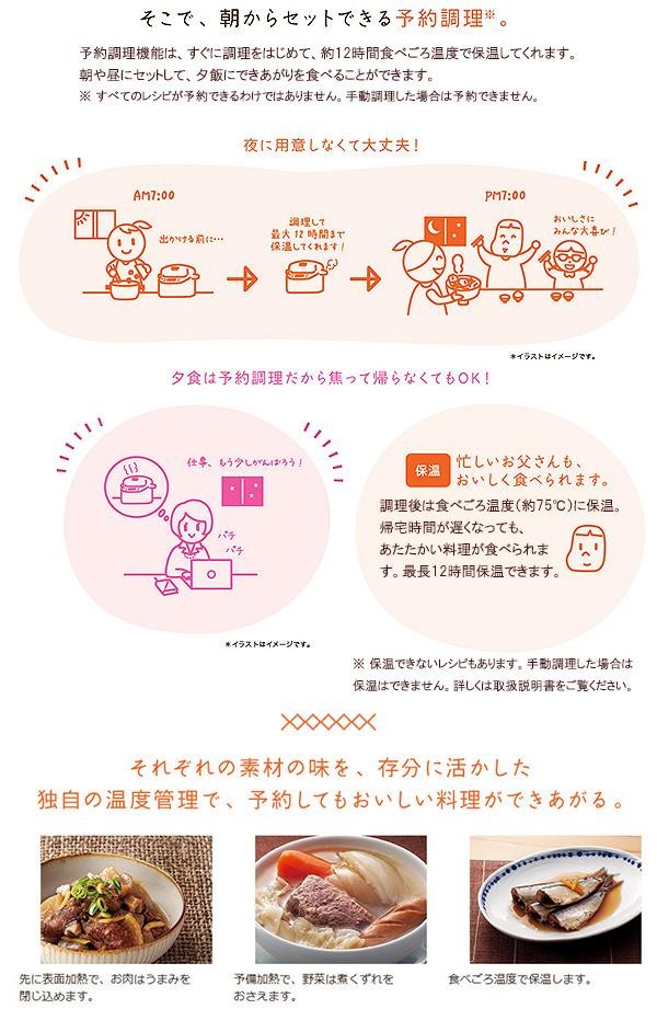 | 予約調理機能搭載!!材料と調味料を入れてセットするだけ☆ |