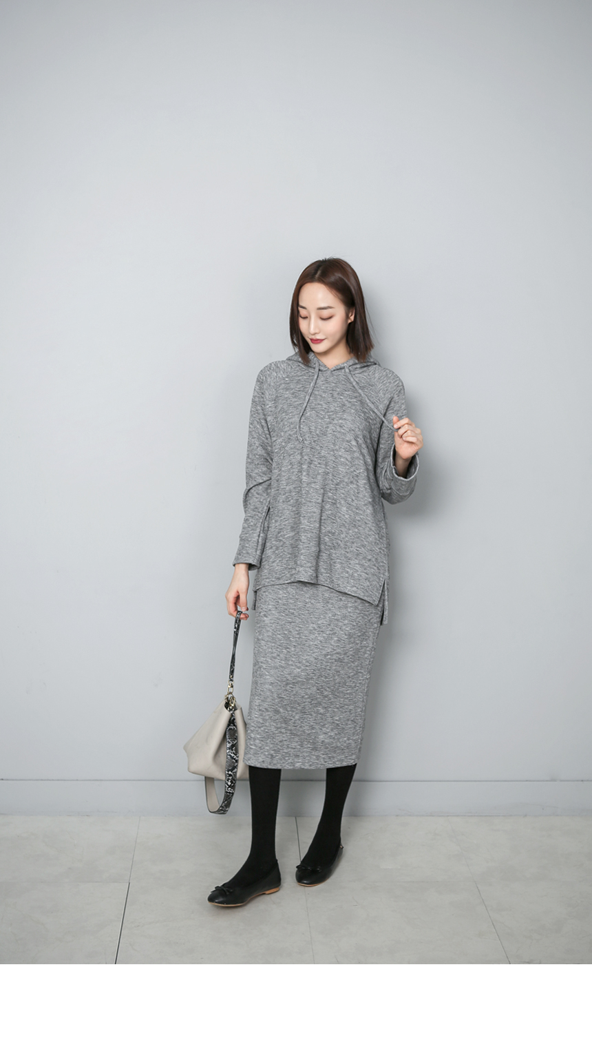 릴리 기모 후드티 스커트 세트롱한 길이감의 언발 후드 티와 밴딩 스커트세트