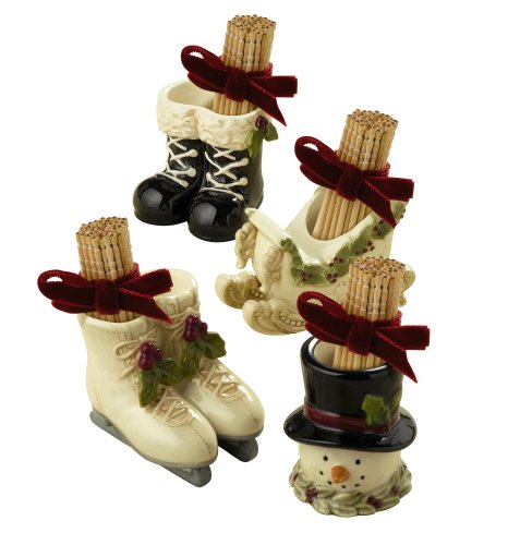 Grasslands Road Deck the Halls Sleigh/Ice Skate/Snowman/Black Boot Toothpick Holders with Ribbon Party Favors, Set of 24