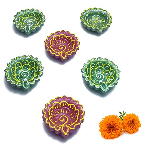 6 Pc Set of BIG SIZE Diwali Gift/Diwali Decorations Diwali Diya.Handmade Natural Earthen Oil Lamp/Welcome Traditional Diyas with Cotton wicks Batti. Deepawali Diya Lamp. Diwali Earthen Lamp. Oil lamp