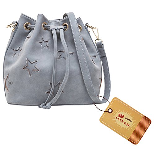 Drawstring and magnetic button closure, strong PU string through the metal-bordered holes, secure and handy; barrel shaped large capacity design, more spacious than others; a secret zipper pocket for your small items, roomy enough for cell phone, makeup case, wallet, etc.