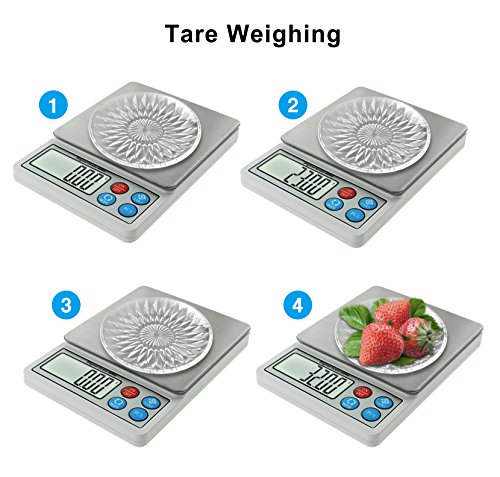 - EASY TO USE: POWER/MODE/TARE/PCS four single operate buttons to avoid your mistake operate or the button not sensitive, "PCS" gives you an accurate count, "TARE" will provide a net weight, "MODE" helps you choose the proper unit. Fast and easy taring and calibration,safe and effortless storage