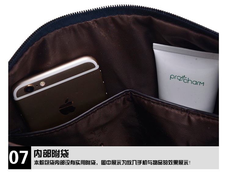 Internal structure:Zipper pocket, cell phone bags, document bags, sandwich zipper bags