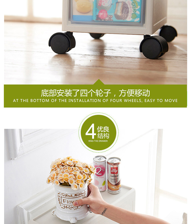 产品名称:四层滑轮抽屉储物柜