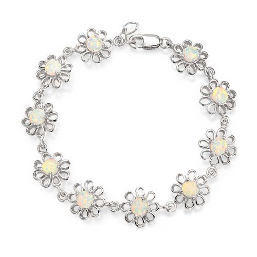 -. Title : [ブリング・ジュエリー] Bling Jewelry 925スターリングシルバーホワイトオパールデイジーフラワーブレスレット7.5[インポート]