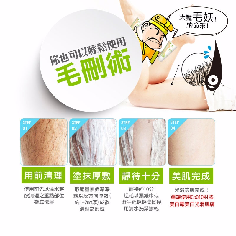 夏天要到了,還在因為沒辦法隨意的穿搭亮麗的短褲短裙苦惱嗎? 要保持自信亮麗的外表,乾淨舒適是關鍵。本產品不含藥劑成份溫和不易刺激,乳酸可以溫和的軟化角質,簡單的幾個動作就可以讓穿著變的無負擔。採用化妝品等級的原料乳酸成分,溫和順理毛髮,皮膚看起來乾淨亮麗,是夏天水水們不可或缺的必備美儀利器。
