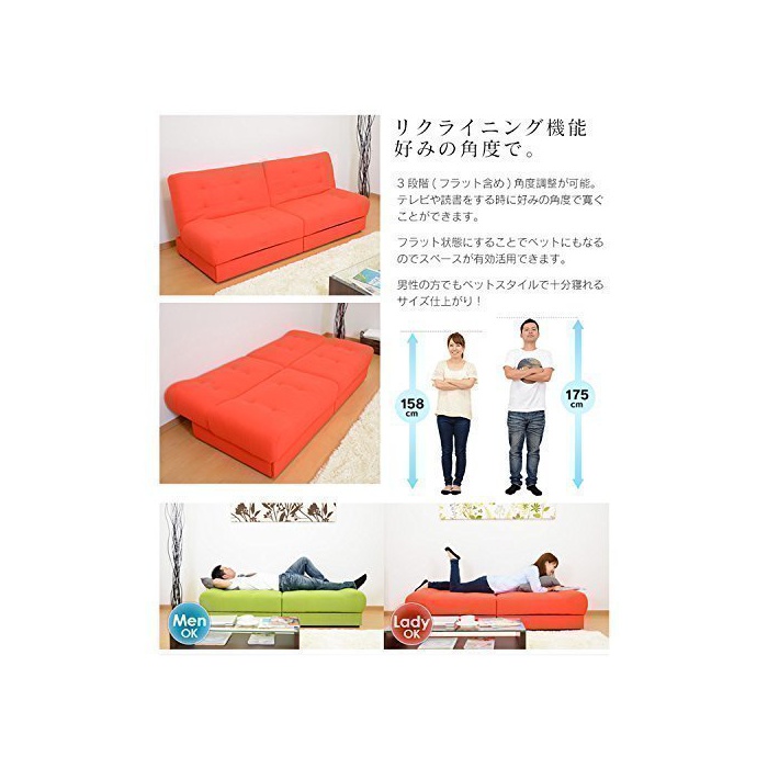 플랫 상태를 포함3단계의 각도 조정이 가능.TV나 독서를 할 때 취향의 각도,또한플랫 상태가 하는 것으로 베드가 되기 때문에 스페이스가 유효 활용으로 옵니다.