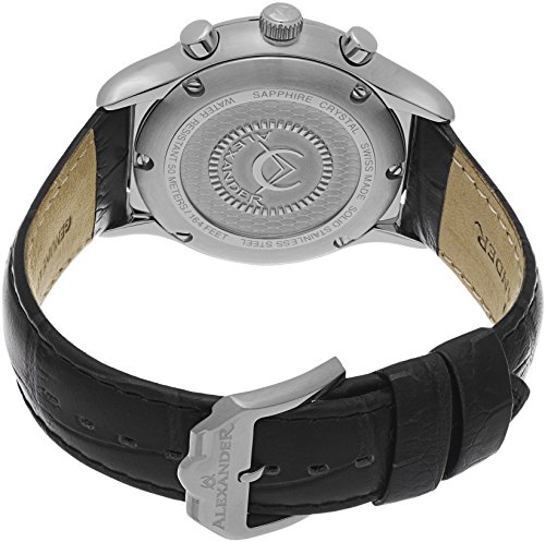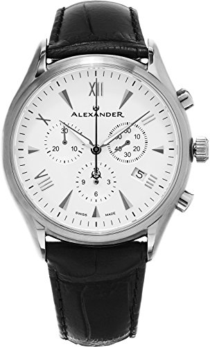 -. Title : Alexander Heroic Pella Wrist Watch For Men - Black Leather Analog Swiss Watch - Silver White Dial Mens Chronograph Watch - Stainless Steel Mens Designer Watch A021-02